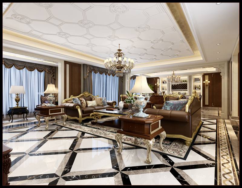 本案的風格為法式輕奢——浪漫與精致并存。在設計選材上盡量選用體現(xiàn)精致大方的布藝家具和金屬結(jié)合布藝沙發(fā)類家具,注重優(yōu)雅風格的同時十分注重舒適性。