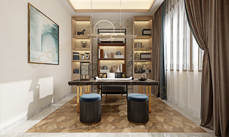 舉目可望的景觀,舒適自然的空間。書房融合現代與東方美學,覓清幽之處靜享書香彌漫的休閑時光。