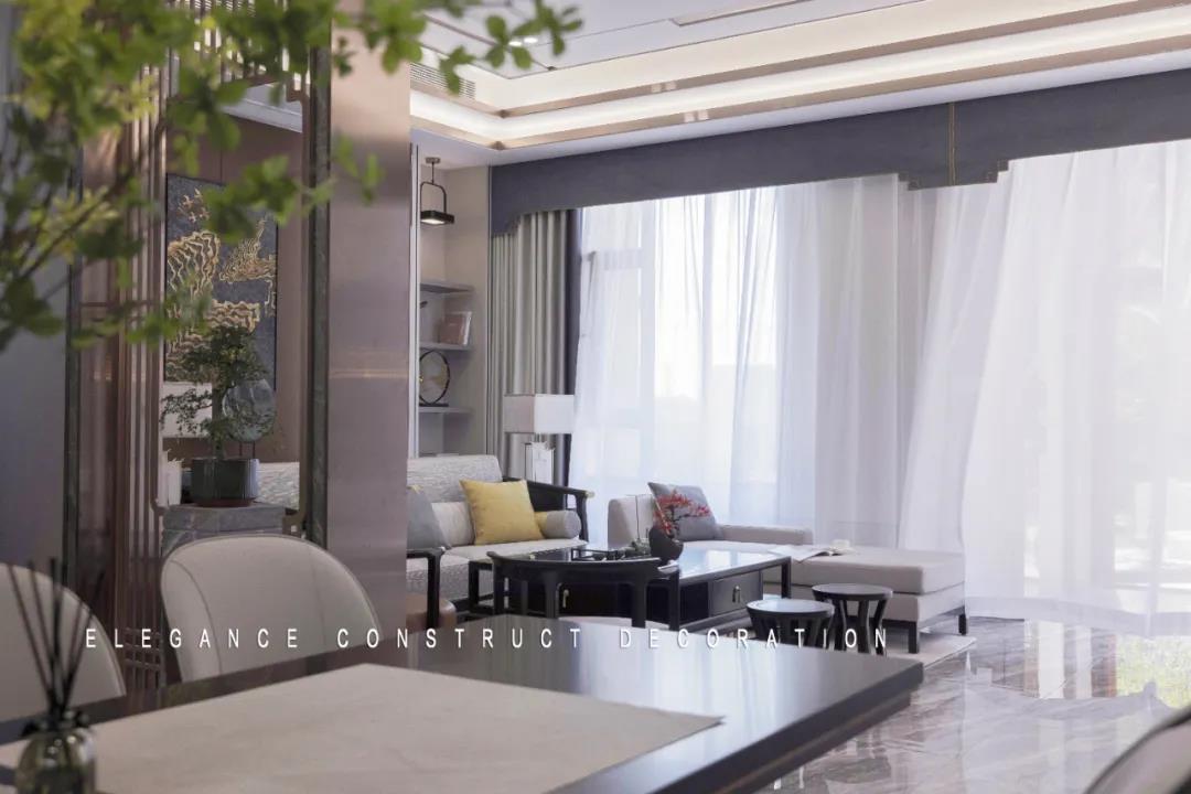 整體設(shè)計(jì)以現(xiàn)代中式風(fēng)格為主軸,去除了傳統(tǒng)中式的厚重與繁復(fù),將形式和標(biāo)志性設(shè)計(jì)簡(jiǎn)化,于現(xiàn)代感中保留了典雅的韻味。