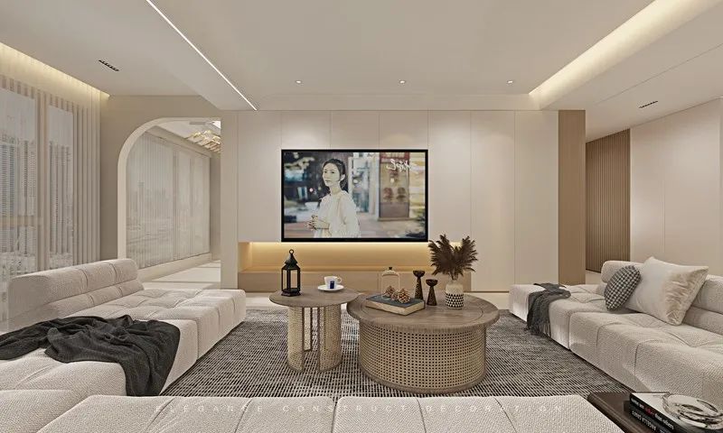 客廳陽臺(tái)采用大面積落地玻璃,打造一方休憩與會(huì)客的藝術(shù)港灣。在陽光的照耀下,使客廳采光充足、沉靜、柔和,溫潤了整個(gè)空間的溫度,提升了空間舒適感。